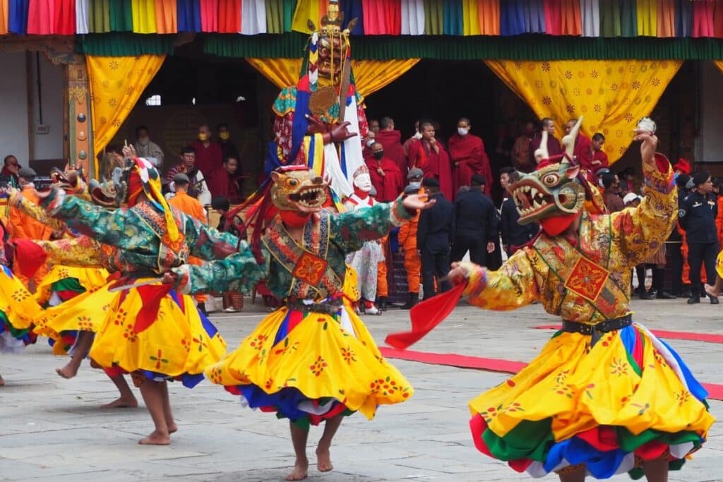 不丹最具代表性的節慶就是策秋節(Tshechu Festival),一年中不同地區會在不同時間舉辦,重點月份落在三月、四月、九月和十月。這是當地信徒的重要宗教日子,僧侶會戴上華麗面具進行宗教舞蹈,許多不丹人也會穿上最正式的服飾參與,氣氛既神聖又熱鬧。