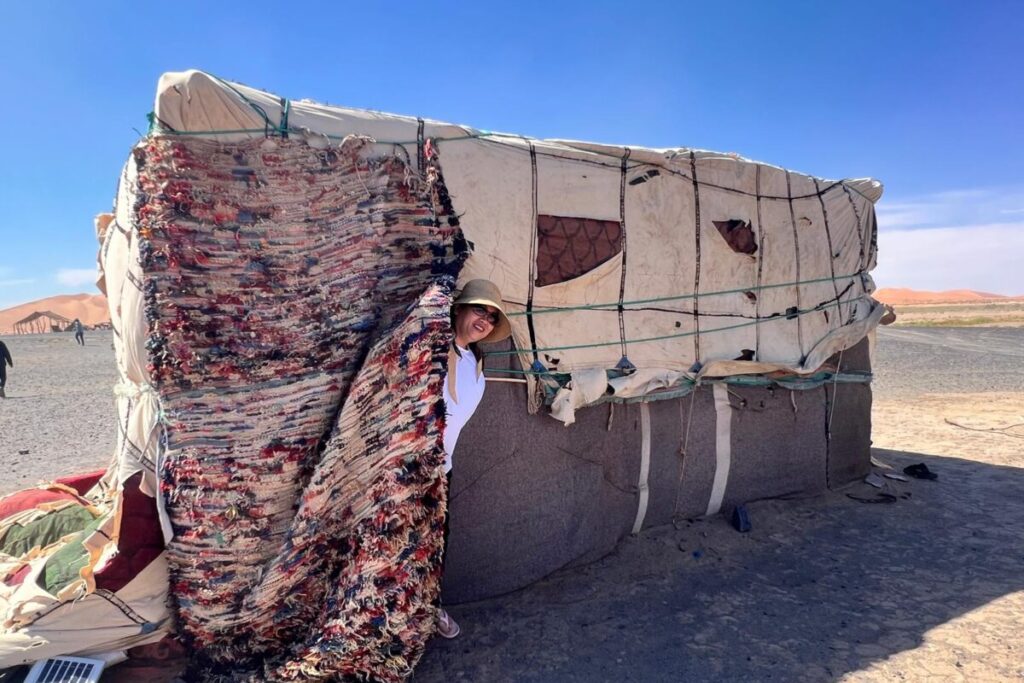 在撒哈拉沙漠,旅客將入住奢華帳篷營區,體驗獨特的沙漠風情。大型行李將由專車運送至營區,旅客可輕裝前往。由於營區依靠太陽能供電,電壓有限,因此不能使用吹風機或自備的電熱水壺,以免造成全營區跳電。營地會統一安排時間提供吹風機使用。帳篷內設有USB 插座,可用來為手機充電,建議旅客前一晚先充滿所有相機電池與行動電源,確保行程中不受影響。